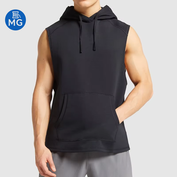 Felpa con cappuccio personalizzata senza maniche per uomo Pullover muscolare da palestra con tasca a canguro